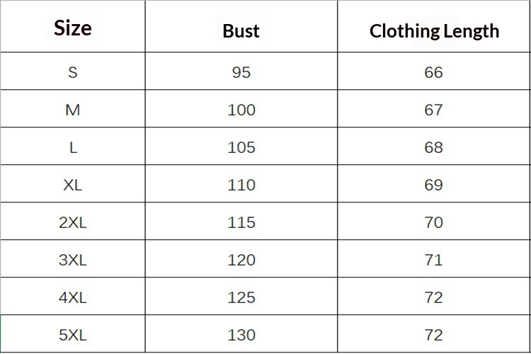 Sizes: S, M, L, XL, XXL, XXXL, 4XL, 5XL